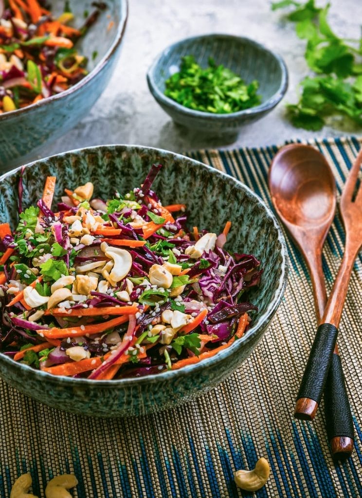 - Crunchy Asian Salad – this slaw-like salad combines red and green cabbage with a ginger dressing